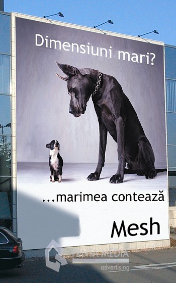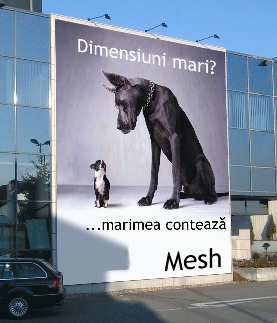 Mesh-urile se preteaza la printuri foarte mari la care un banner s-ar rupe datorita propriei greutati sau a incarcarilor din vant. Print outdoor publicitar realizat prin imprimarea cu cerneala pe baza de solvent a poliplanului perforat.