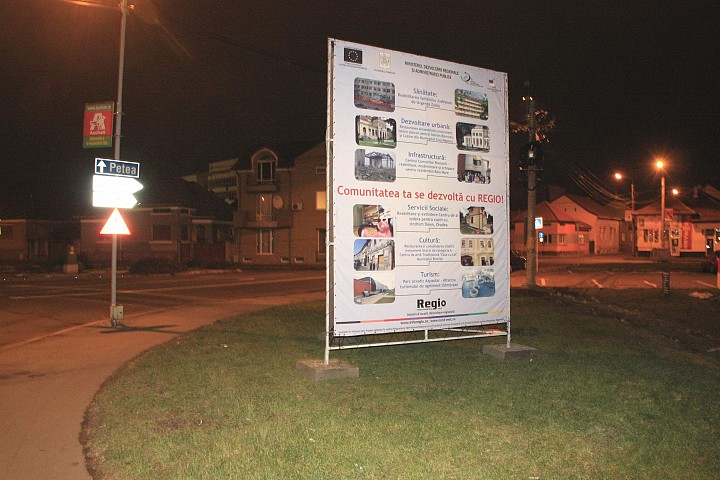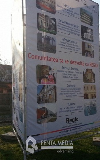 Structura publicitara este alcatuita din module asamblabile prin surburi. Materialul publicitar expus poate fi realizat din material blockout sau frontlit printat, si finisaje cu tivuri si capse perimetrale care sunt ancorate de rama perimetrala.