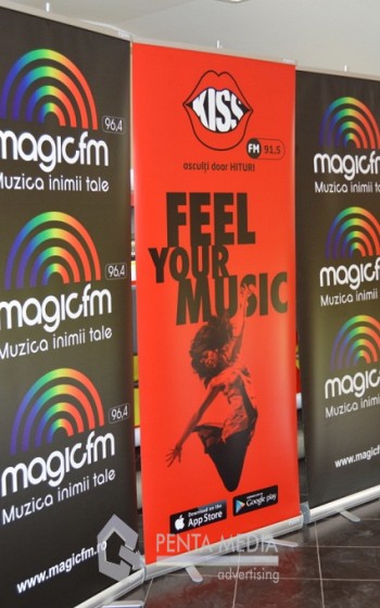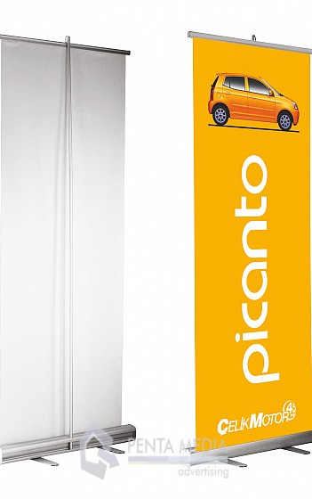 Sistemul roll-up este cel mai popular sistem de afisaj portabil de interior ce reprezinta o solutie foarte rapida pentru afisarea unui mesaj publicitar, cu alte cuvinte este un afis publicitar portabil. Montajul rollup-ului poate fi realizat in mai putin de 1 minut, fara unelte aditionale si fara efort, ceea ce il face ideal pentru standuri expozitionale, conferinte, campanii de sampling sau orice alte medii in care este nevoie de o prezentare profesionala.